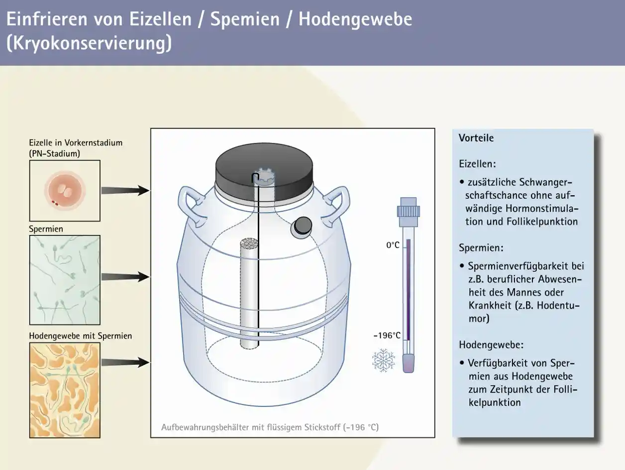 Das Einfrieren von Keimzellen und Embryonen (Kryokonservierung) bietet zahlreiche Möglichkeiten, die Fruchtbarkeit zu sichern oder flexibel zu gestalten.